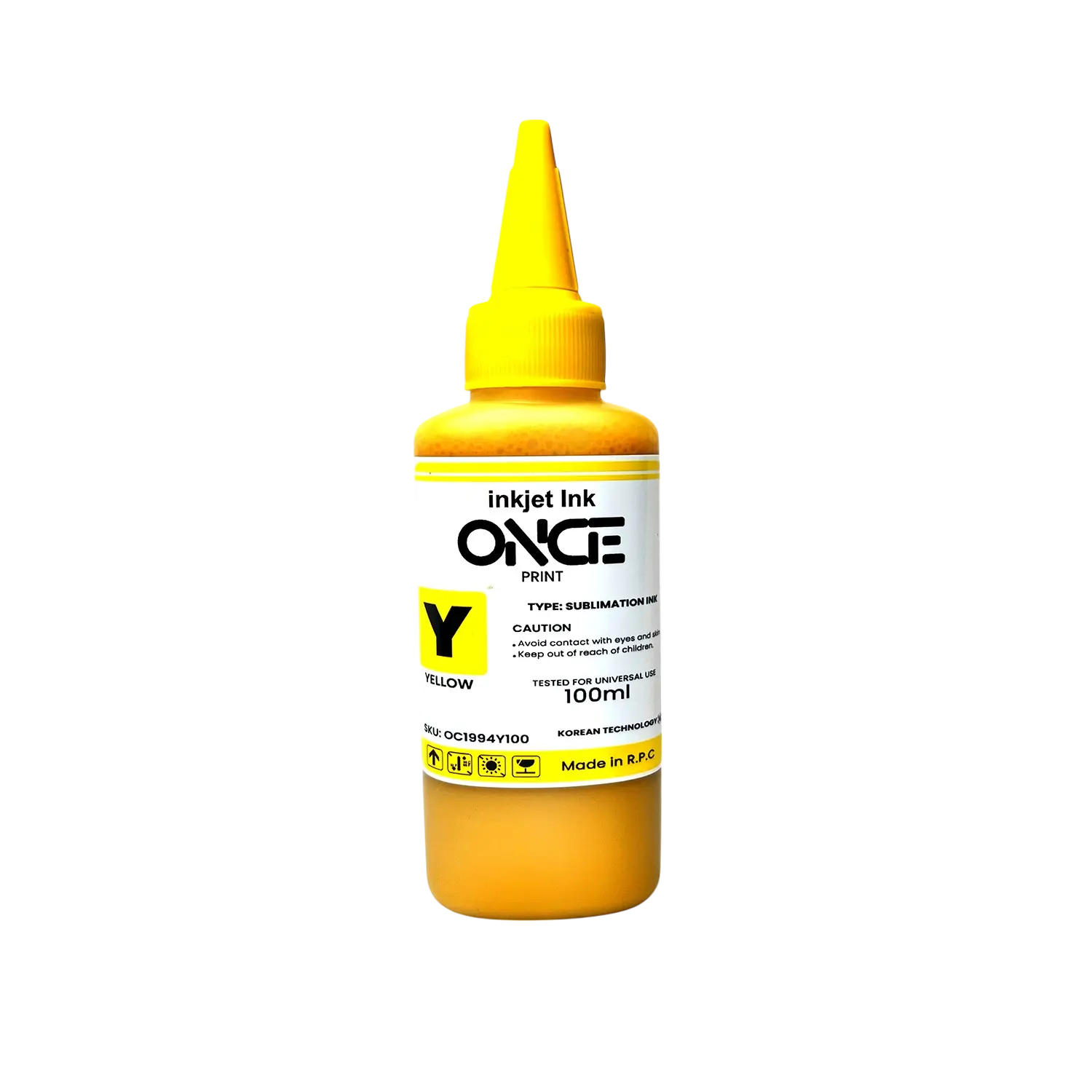 💛 Tinta de Sublimación Amarilla – 100 ml – Boquilla Grande – Once Print