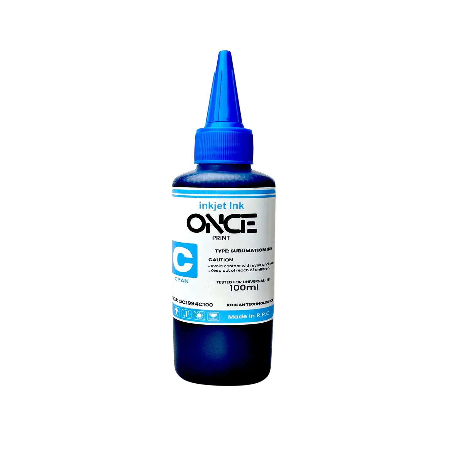 💙 Tinta de Sublimación Cyan – 100 ml – Boquilla Grande – Once Print